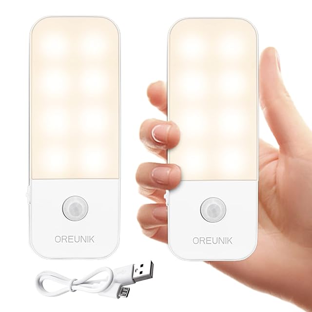 屋内用モーションセンサーライト、充電式白色光の常夜灯ダウンセンサーキャビネットライト、取り外し可能な磁気ストリップクローゼットライト付きワードローブ、トランク、ベッドルーム、階段、廊下(2パック)