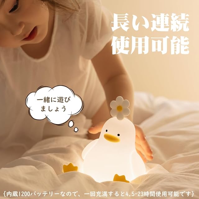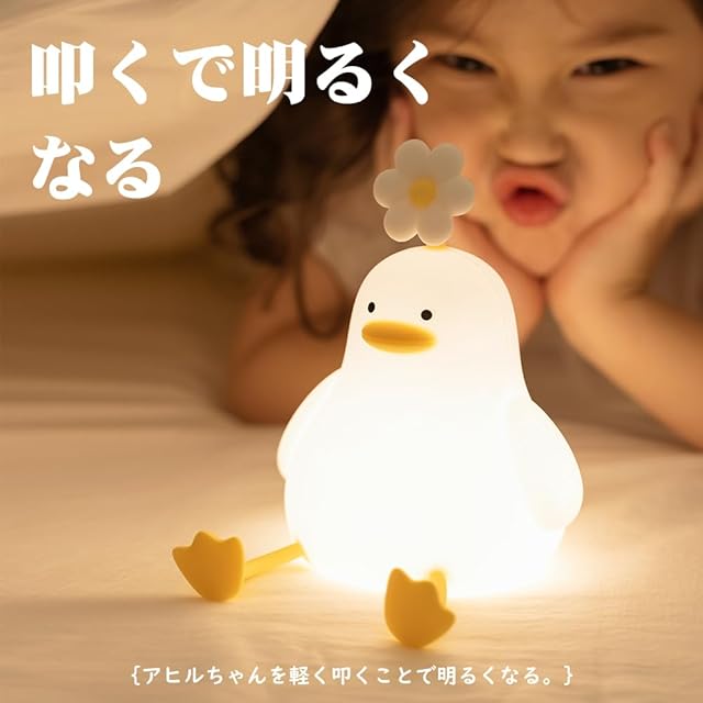 【タップ操作& USB充電】簡単で操作タッチ式のLEDナイトライトなので、アヒルちゃんを叩く、もしくはつまむことで明るさを弱めか、強めかに調整できます。長老 大人 子供にも簡単に使えます。パソコンでもコンセントでも充電できます。充電に接続、または充電が完了の時、パンダちゃんが点滅して教えます!