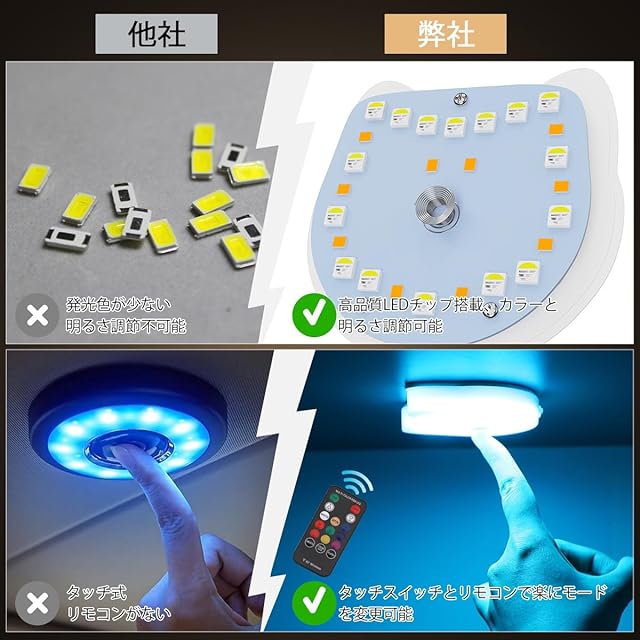 商品名:Catland ルームランプ LED 車 猫 RGB ルーム LEDバルブ 9色12パターン 白 電球色 アイスブルー 赤 緑 青 黄色 レモンイエロー ピンク紫 点滅 電球 ストロボ 室内灯 ラゲッジランプ マップランプ トランク灯 読書灯 玄関 階段 室内灯 輝度調節 メモリー機能あり タッチ式 配線不要 汎用 USB充電 マグネット 小型 1個