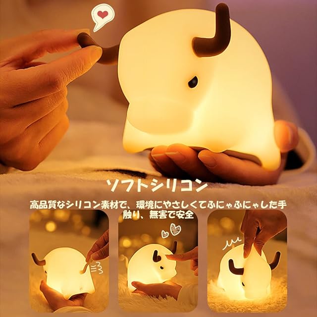 デスクライト ナイトライト ウシ LED ランプ 牛 うし 授乳ライト 照明 テーブルランプ 寝室 卓上 子供部屋 おやすみライト 無段階調光 間接照明 シリコン 目に優しい おしゃれ USB充電式 枕元 ライト 出産祝い 誕生日 プレゼント