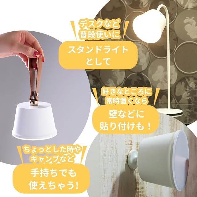 【アウトドアにおすすめ!】 スタンド、壁付け用、折り曲げできるフック、ストラップで様々なシーンでご利用できます!そのまま置くのも良し!テントにかけるのも良し!トイレに行く際の懐中電灯にも!!