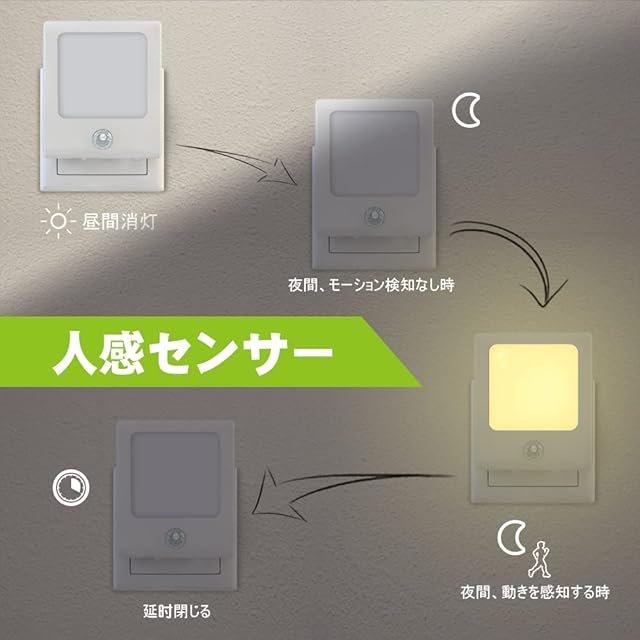 商品名:センサーライト 室内 人感センサー ライト NLAAHCE コンセント ナイトライト LED 明暗センサー付き 電球色 明るさ調節 廊下、玄関、子供部屋、キッチン、階段に対応 授乳用ライト 子供 老人 ベイビー 年取り使い安心 2個セット