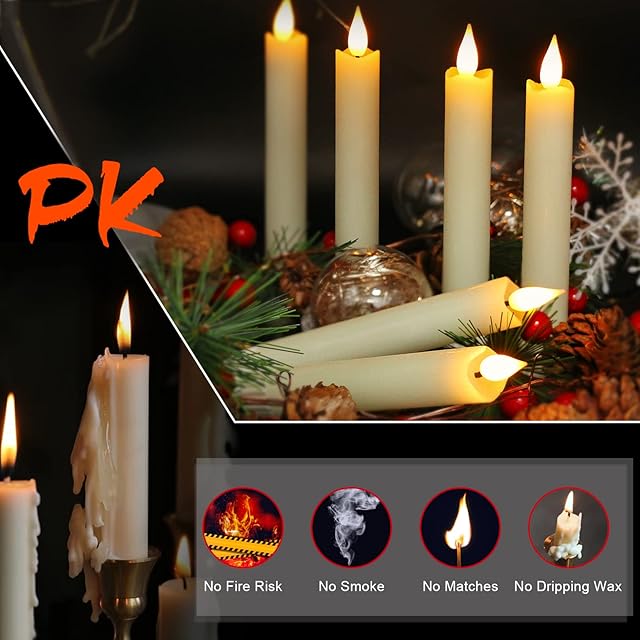 【安全&丈夫】揺らめくLED炎のないテーパーキャンドルは100%安全、ペットや小さなお子様がいる家族に安全です。 このキャンドルは煙を使わず、火災の危険性もなく、火傷も心配もありません。