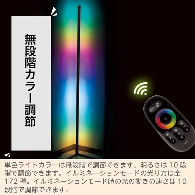 商品名:コーナーフロアライト 大きさ約155cm 気分に合わせて灯りをチェンジ。お好みのカラーモードで空間を演出 全172種類のイルミネーションモードを搭載 コーナーライト フロアライト 間接照明 リモコン操作式 KSLT-006B LITHON (ライソン)