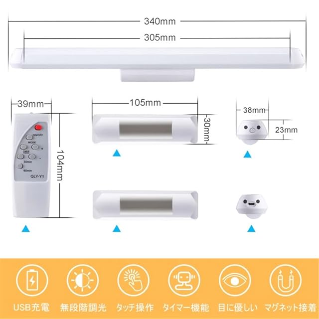 商品名:SOAIY デスクライト リモコン付き コードレス マグネット USB充電式 読書灯 無段階調光 3段階調色 角度調整可能 目に優しい 寝室/ベット/学習机/戸棚/クローゼット/壁掛け/車内 化粧鏡などに適用