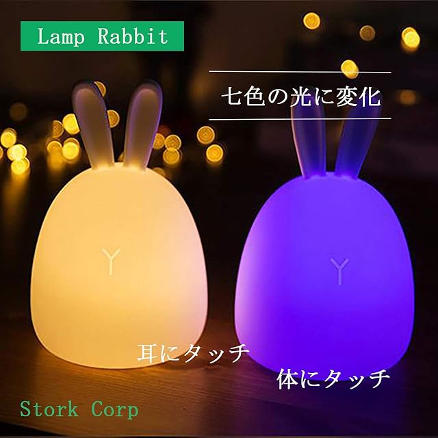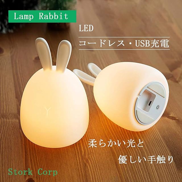 商品名:Stork Corp ベッドランプ テーブルランプ うさぎ 間接照明 ナイトライト 読書 LED USB充電 タッチ式 モード選択 七色変化