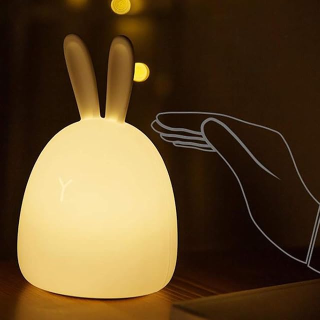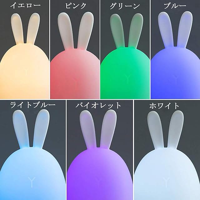 LEDによる柔らかい光で、寝室の常夜灯として最適。顔の描き入れのない落ち着いたデザインです。<br>誕生日、クリスマスなどのパーティーに素敵な演出をします。プレゼントとしても喜ばれます。<br>その他、ショールーム、リビングのテーブル、部屋のコーナー、トイレ等にも落ち着いたワンポイントになります。<br>USB充電:1,200mAh 素材:ABS+シリコン サイズ:10 x 10 x 16 cm 重量:170g<br>底面のスイッチ(長押し)を入れた後は、ウサギの耳や体をタッチして下さい。イエロー、ピンク、ブルー、グリーン、七色変化とモードが変わります。フル充電で9~10時間連続点灯します(単色モード、当店実測値)。USB電源に接続のままの使用も可能です。