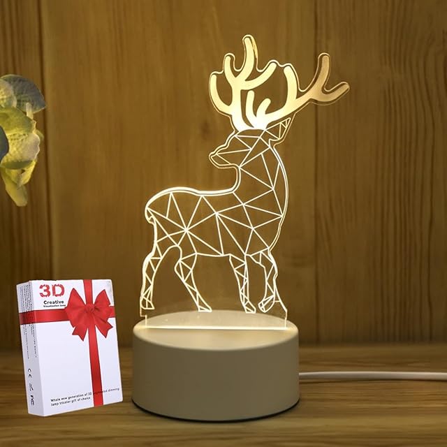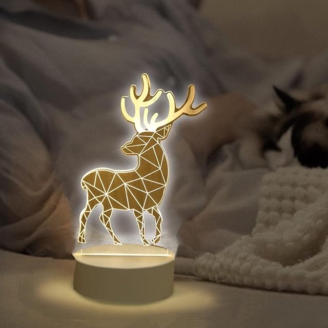 DYXIA 3D ナイトライト テーブルランプ LEDライト 誕生日お祝い ベッドサイドランプ 部屋飾り 卓上ライト スタンドライト USB 3色調光 プレゼント クリスマス (鹿)