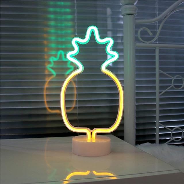 ENUOLIパイナップルネオンサインウォ ムホワイトLEDネオンライトサインホルダ ベ ス室内インテリアバッテリ ホ ムパ ティ 誕生日のベッドル ムベッドサイドテ ブルデコレ ション子供キッズギフト用ライト運営して