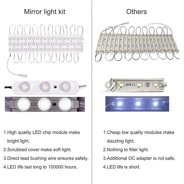 ❤【設置が簡単】背面に強力な粘着テープがあり、ミラー、壁、または滑らかな場所に貼り付けるだけです。次に、付属の安全な12V電源を接続します。 10FTロングキットを完成させると、インストール後に余分なLEDストリップを切断できますが、余分なストリップを使用する場合は、電源を自分で接続するためのコネクタを購入する必要があります。