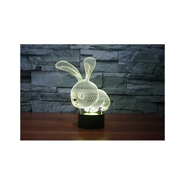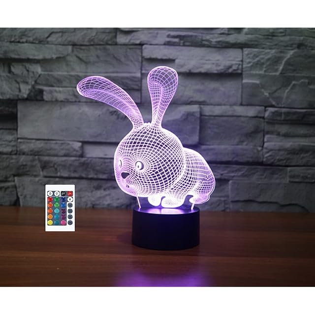 商品名:SUPERRUIDALONG 3Dラビットナイトライトリモートコントロール16色イリュージョンアクリルLEDテーブルベッドサイドランプ子供寝室デスク装飾誕生日ギフトおもちゃ