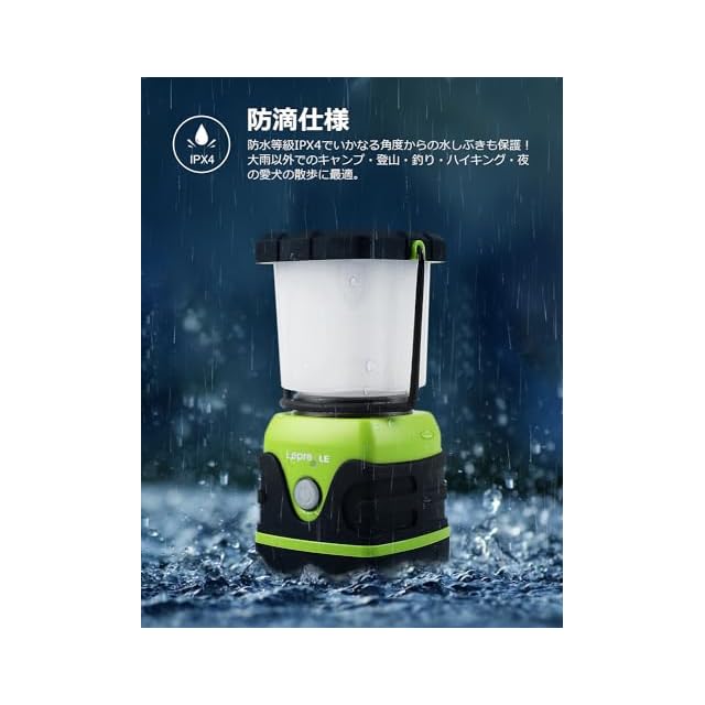 【防滴・耐久】ランタンの防水性能はIPX4で、いかなる角度からの水しぶきにも耐えられます。耐衝撃性・耐熱性・耐磨耗性に強く、悪天候にあっても心配することなく、優れた耐久性を実現します(ご注意:生活防水のため、大雨天気の使用をお控えください。)