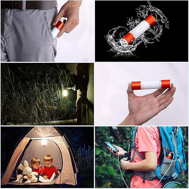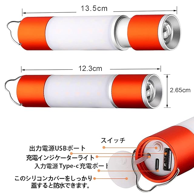 【USB Type-C充電式双方向& アウトドア用ライト】2600mAh充電式のリチウムバッテリーが内臓、付属のUSB Type-C ケーブルで直接に充電することができます。ユニークな充電デザイン、USBポートを水埃から守ります。緊急の場合モバイル電源としても使用できます、 は携帯電話や他の電子機器の充電ができます。