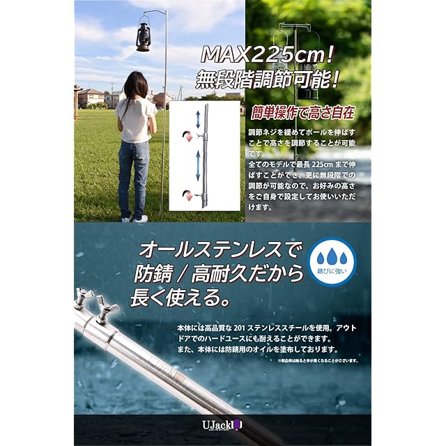 UJack(ユージャック) ランタンスタンド ハンマーランタンスタンド ステンレス製 打ち込み式 自立型 収納ケース付き (タイプ:ダブル)