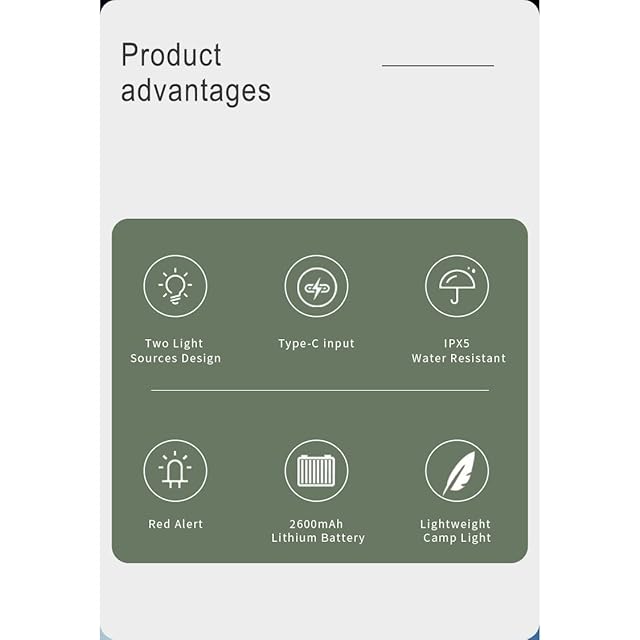 充電式 LEDランタン 最大200ルーメン 充電式キャンプランタン 5段モード切替 ランタン(電球色) ⇔ (白色/赤色 点灯/赤色点滅) 2600mAh マグネット式付き IPX5防水 Type-C急速充電 懐中電灯 アウトドア携帯キャンプ用品 地震/台風/停電事故/キャンプ アウトドア&防災用品 (緑)