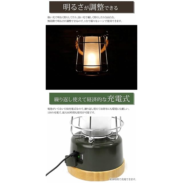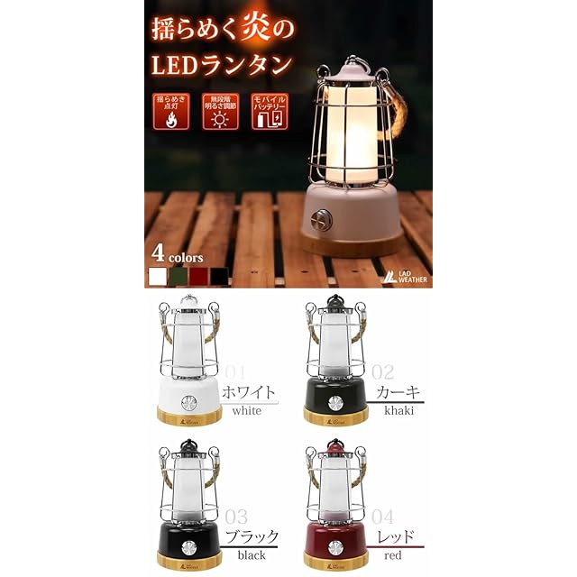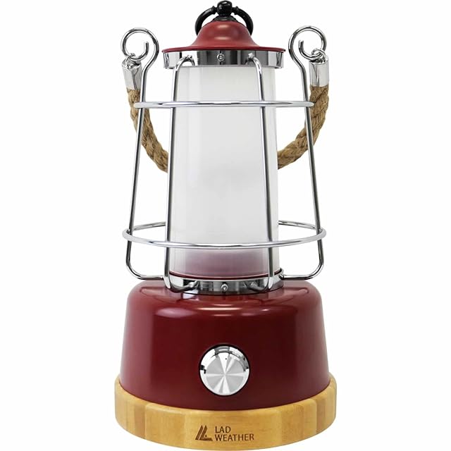 [ラドウェザー] LED ランタン 充電式 揺らめき点灯モード 麻と竹の天然素材 3600mAh (レッド)