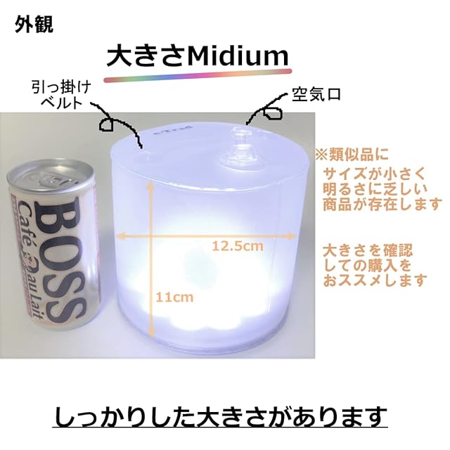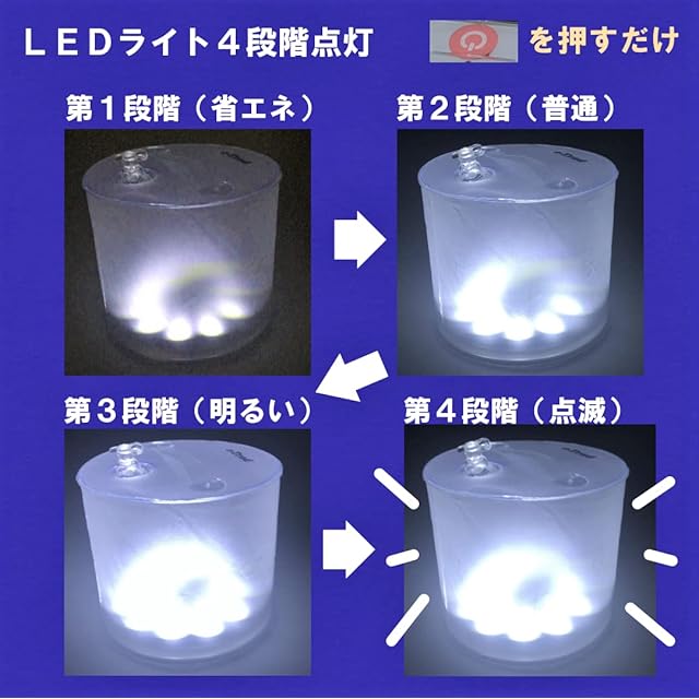 空気で膨らませて使用する超軽量で便利なLEDランタンです。重さはたった100g。スイッチを押すだけのシンプル構造&簡単操作で持ち運びにも便利です。