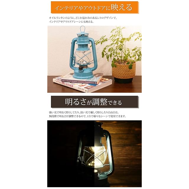 オイルランタンのように、どこか温かみのあるレトロデザインで、 インテリアやアウトドアシーンにも映える。