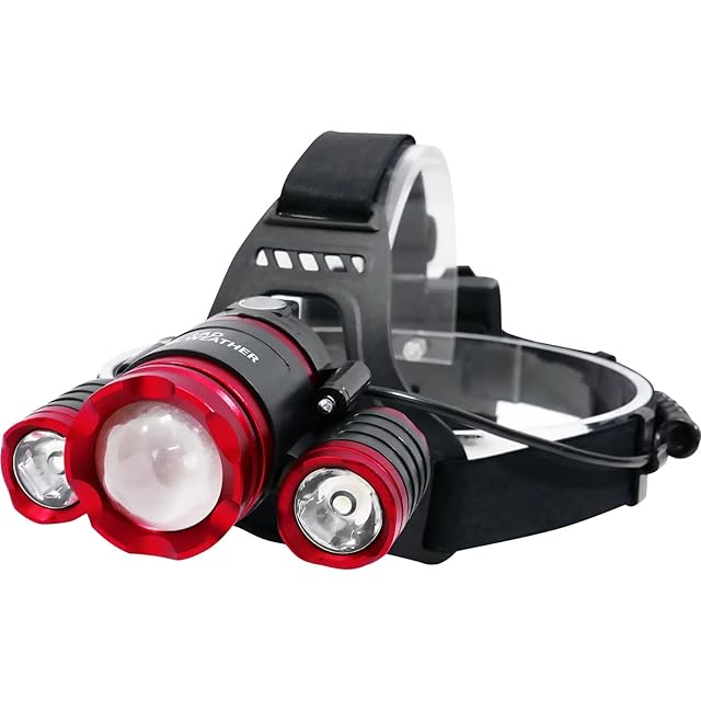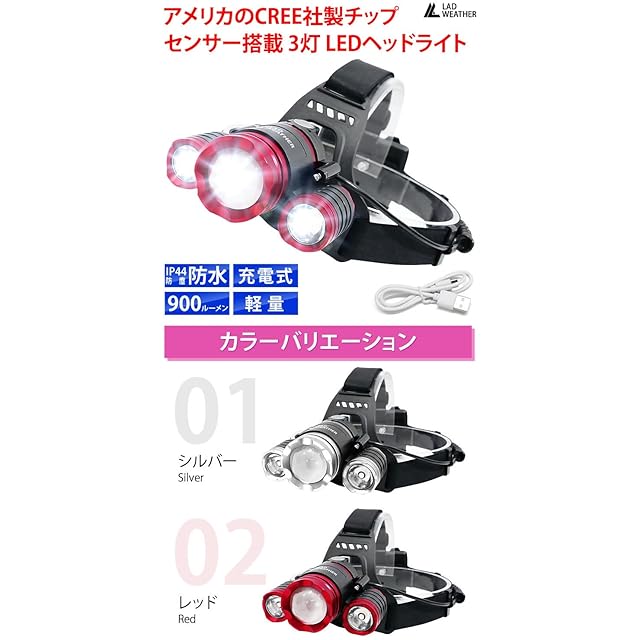 [ラドウェザー] ヘッドライト CREE社製チップ センサー搭載 3灯 LEDヘッドライト 充電式 防水 LED ライト 防災 災害 キャンプ 釣り 作業用 (レッド)