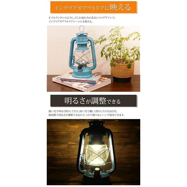 オイルランタンのように、どこか温かみのあるレトロデザインで、 インテリアやアウトドアシーンにも映える。