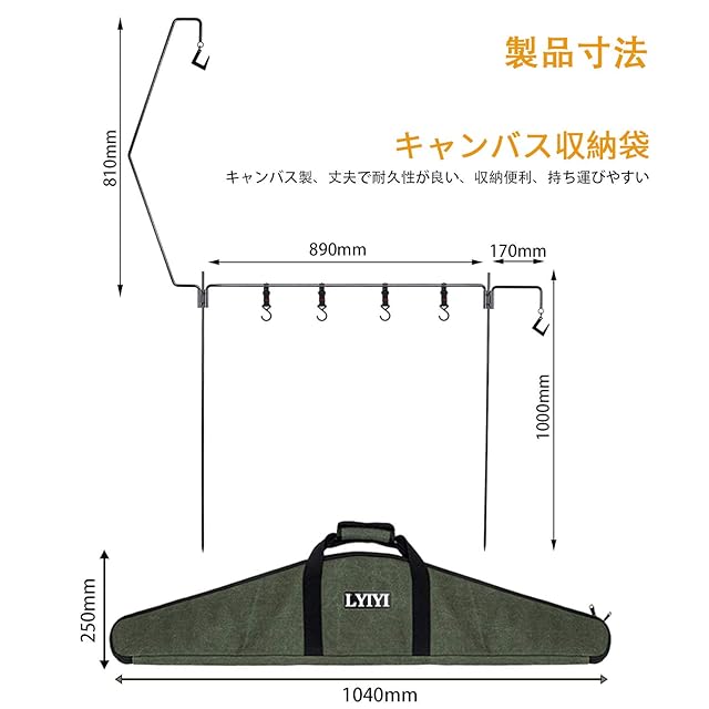 LYIYI ランタンスタンド ランタンハンガー 打ち込み式 スチール ランタンポール 多機能 軽量 コンパクト アウトドア キャンプ用 専用収納ケース付き