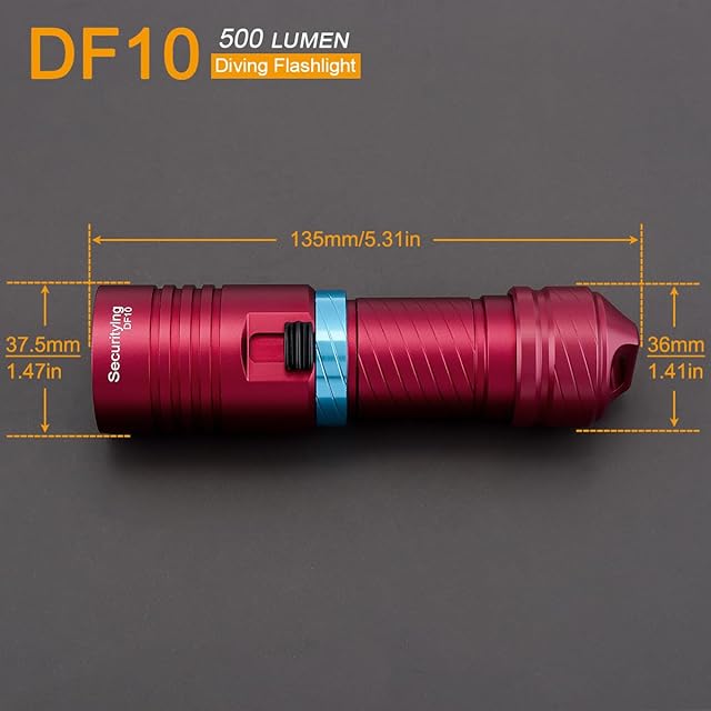 SecurityIng DF10 ダイビングライト 500ルーメン 水中ライト 水中30Mまでに使用可能 IPX8防水 ダイビング用懐中電灯 9度スポットライト ダイビング スキューバダイビング アウトドア 釣り キャンプ 登山(電池別売り)