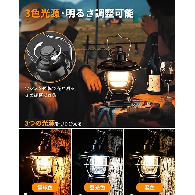Smiling Shark ランタン USB充電式, ビンテージ キャンプランタン 60時間(Max)まで使用可能 アウトドア灯具 金属製 3色切り替え【昼光色・電球色・混色】 アウトドアキャンプ ハイキング 防災 停電 ロマンス ギフト