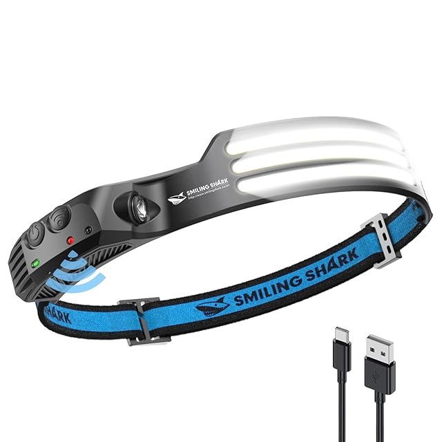 【手を振ることで作動するモーション】内蔵チップは、あなたの指示を感知して、いつでもオン・オフを切り替えることができ、両手を照明のために解放することができる。快適で調節可能なヘッドバンドが付属しているので、ヘッドランプを使えば、仕事、冒険、遊びに両手を自由に使える。