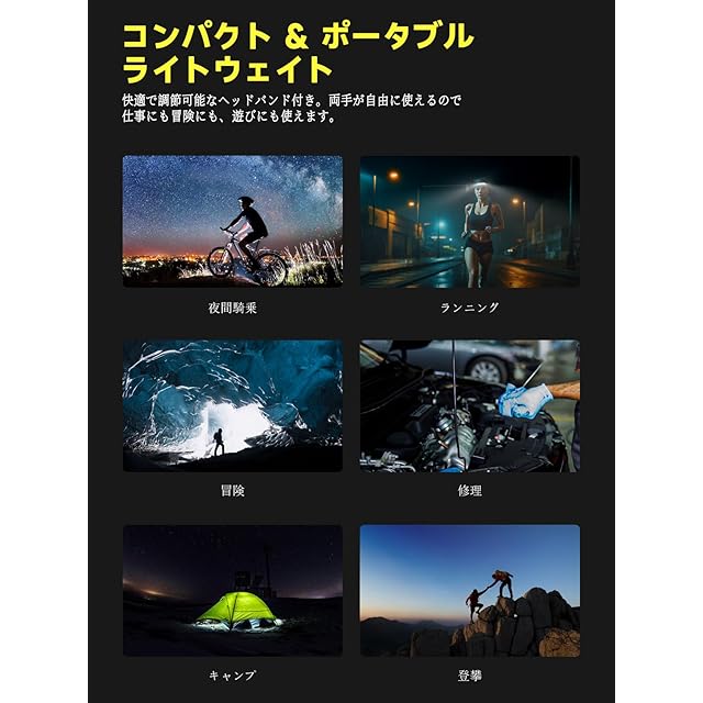 【夜間の活動に最適なパートナー】キャンプ、ハイキング、釣り、DIYなど、このヘッドランプはあらゆる夜間活動に最適な光を提供します。