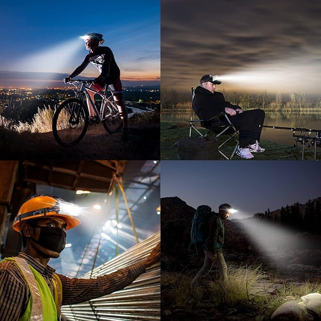 【4点灯モード】:使用環境に対して、3つの点灯モードが切り替えます。使う時、初めてスイッチを押す、強いライトが点灯します。スイッチを2回押す、弱いライトが切り替えます。調節可能であらゆる場面や環境に簡単に対応できます。再生警告&セーフティライト機能が付き、使用安心です。スイッチをオンにすると、後頭部分の警告灯が点灯し、警告ランプおよび信号ライトとして機能します。悪天候の仕事、夜釣りなどの夜間活動の時に、居場所確認として安全性を確保致します。
