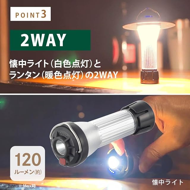 【 特 長 】 ◆USB充電式(Type-Cポート搭載) ◆懐中ライト(白色点灯)とランタン(暖色点灯)の2WAY ◆スイッチ長押しで無段階に明るさ調整、赤色点滅モード付き ◆給電ボート(Type-A)付きでスマホなどの充電も可能 ◆アウトドアに便利な吊り下げフックや脱着可能なシェード付き ◆便利なマグネット付き ◆当社別売り三脚(型番:SL-PCTA5)を取り付けできます