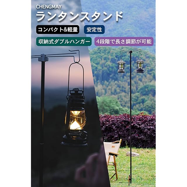 CHENGMAY ランタンスタンド ダブル 収納式ダブルハンガー 直径16mm 打ち込み 軽量 高さ調整 コンパクト キャンプ ランタンポール アウトドア キャンプ用品
