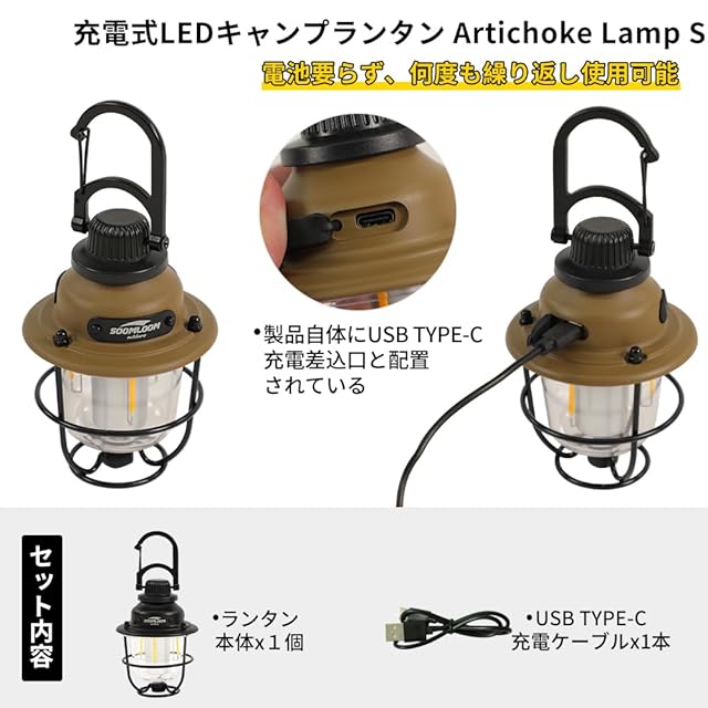 Soomloom充電式LEDアーティチョークランタンSランプ artichokelampキャンプ電灯ランプ連続点灯3-30時間色温度1800K-6500K無段階調光キャンプ/アウトドア照明