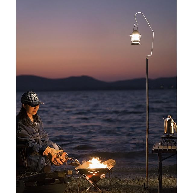 【よりおしゃれなデザイン】ランタンフックの部分には、人気のある「弓」の要素が取り入れられており、従来の弓の形状にも角度の調整が行われています。これにより、より長いランタンなども掛けることができます。最大2kgの重量に耐えることができます。ランタンスタンドの収納サイズは38×10×4cmで、キャンプの荷物にコンパクトに収納できます。