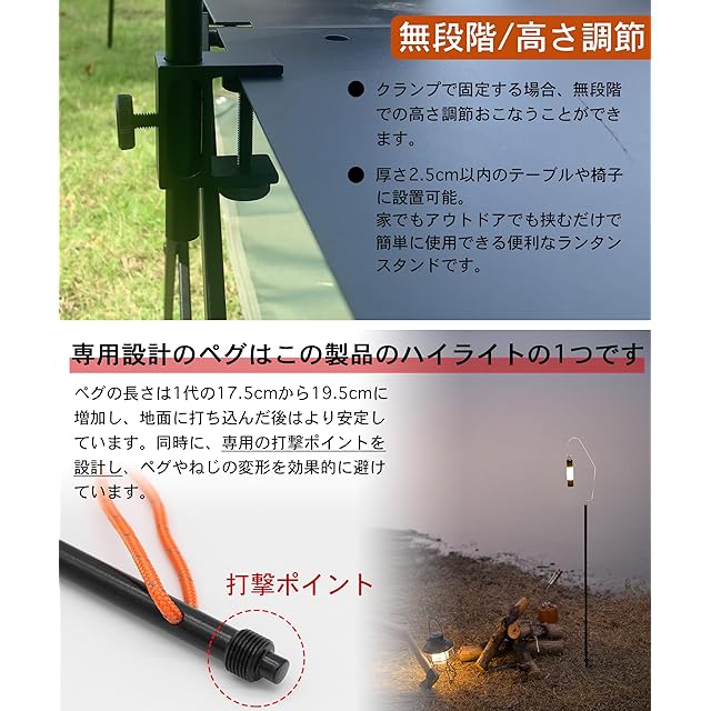 CHENGMAY ランタンスタンド ランタンポール 1.5mm極厚ポール 頑丈 打ち込み式 テーブル 2way 軽量 コンパクト 自立式 安定性強化 耐荷重2kg アウトドア キャンプ用品 収納ケース付き (2世代-2way)