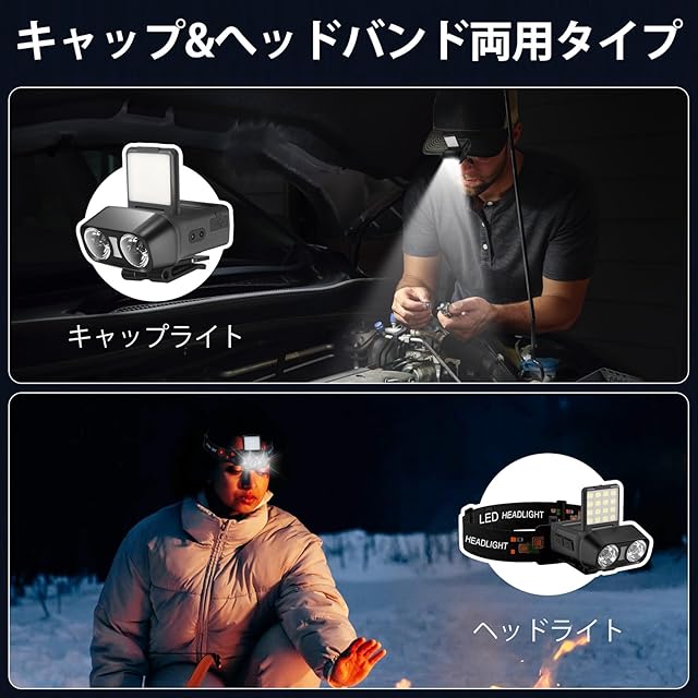 DAI NING ヘッドライト キャップライト 高輝度 充電式 900ルーメン LED 5モード IPX4防水 センサー搭載 無段階調光 180°角度調節 軽量 帽子装着型 釣り 登山 キャンプ 散歩 アウトドア 災害 停電対策 収納ボックス付き