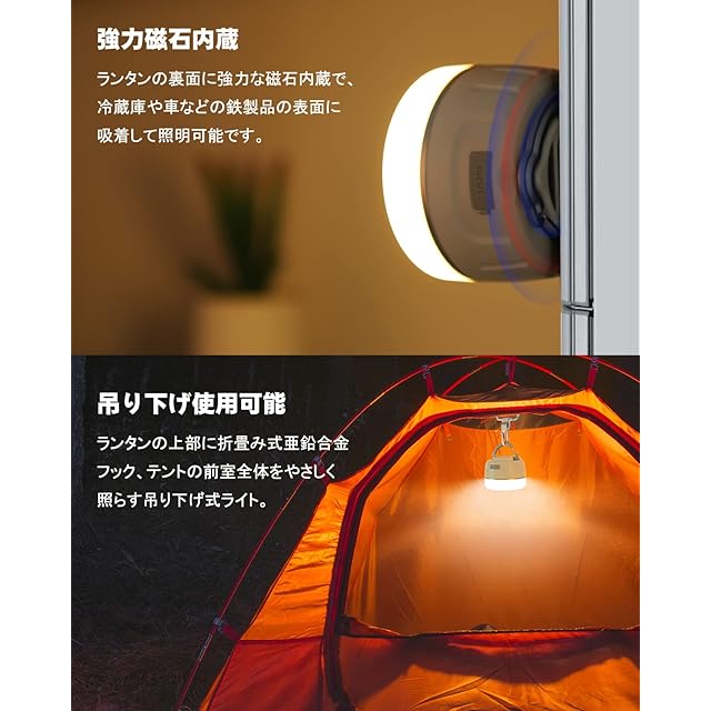 [JOYOUS] ランタン LED ランタン Type-C 充電式 リモコン付き 小型 IP65防水 暖色 光色輝度記憶 無段階調光 4色切替 吊り下げフック・マグネット式付き アウトドア携帯キャンプ用品 防災 あかり 停電時用 【実用点灯8-250時間】 (白)