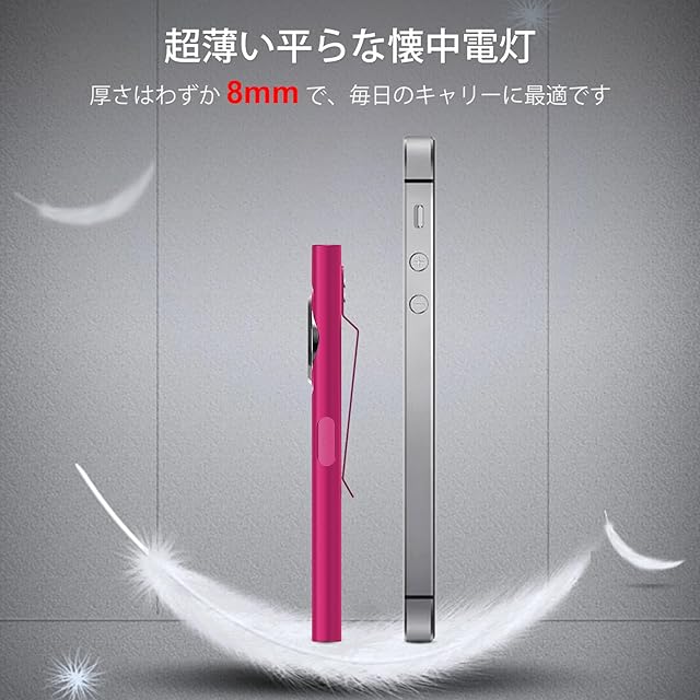 【コンパクトでフラットなデザイン 】 E5トーチはコンパクトなデザインのスティックを採用しています。トーチのサイズは約10.6X2.5X1.5cm、わずか約35.8g、超小型軽量で、フラットなデザインはポケットやバッグが膨らむのを防ぎ、より省スペースで持ち運びやすくなります。