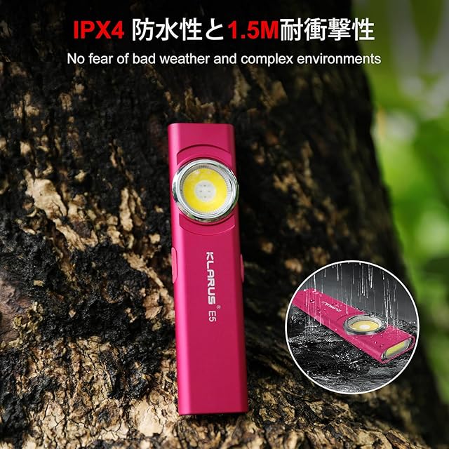 KLARUS E5 ミニライト小型led充電式懐中電灯、維持、キャンプ、ハイキング、緊急事態のために適した磁気基盤およびバックル クリップが付いている明るく 470 ルンメー 小さく平らなミニライト - 赤