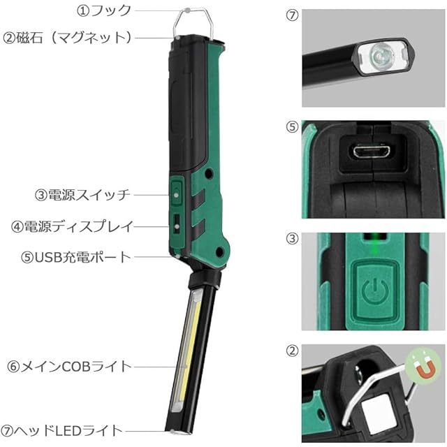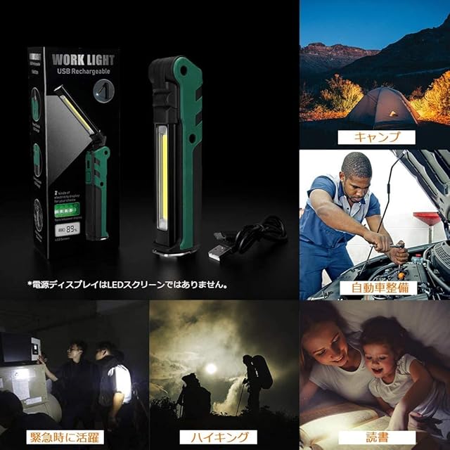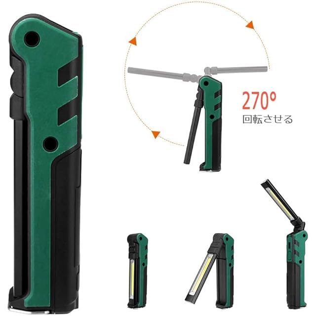 vviho LED作業灯 COBライト ワークライト USB充電式 ハンディ 折り畳み式 マグネット付き アウトドア キャンプ用 台風 地震 停電 非常時用 防災グッズ (グリーン 1個入り)