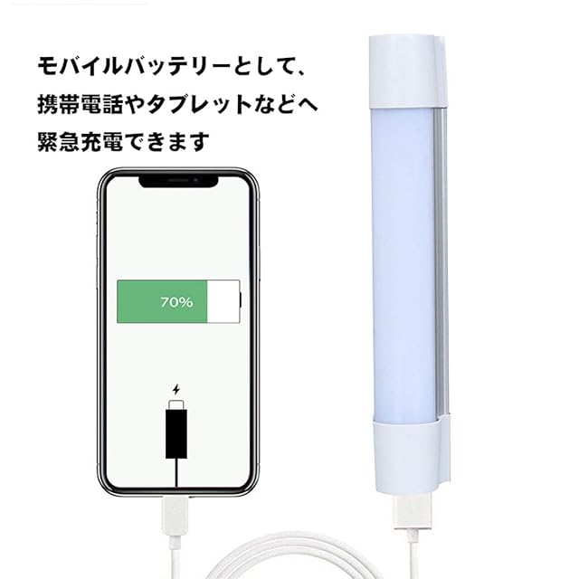 【モバイルバッテリー機能搭載】LEDライトは4400mAhのリチウムバッテリーを内蔵し、 USB出力ポート付きなので、緊急時スマホ、タブレットと他のデバイスなどへ給電することができます。(電圧入力・出力:Micro USBーDC5V 充電電流:2A)さらに、パソコンやACアダプターやモバイルバッテリーなどから本製品へ充電できる、とても便利!停電時には応急的に使用でき、外出や携帯にも便利で暗くなった時には照明ができます。