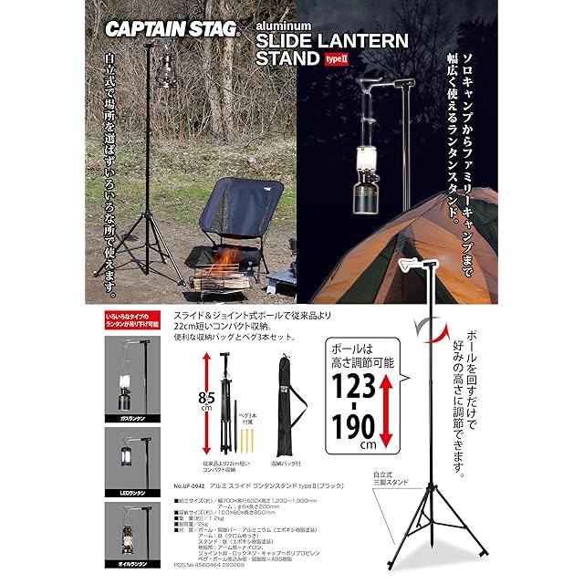 キャプテンスタッグ(CAPTAIN STAG) ランタンスタンド アルミスライドランタンスタンド type2 プラスチックペグ3本・収納袋付き ブラック UF-42