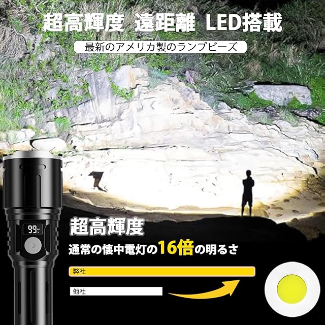 【新型超高輝度と遠距離&実用的なled輝度】この明るいLED懐中電灯は一つ高性能の LEDを採用し、明る高出力を提供できます!そして、最適化新設計された用PMMA大リフレクターを使用、懐中電灯は非常に優れた集光機能を備えて、照射距離最大2000メートルに達します。暗闇でも広範囲を明るく照らし出すことができます。狩猟、サバイバル、災害対策、仕事、旅行、捜索などの場合にも大活躍ですア。