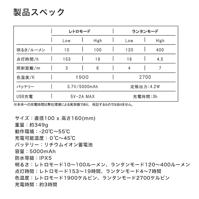 【長時間点灯】最長153時間(レトロモード弱)の長時間点灯が可能です。いざというときの防災の備えとして最適です。