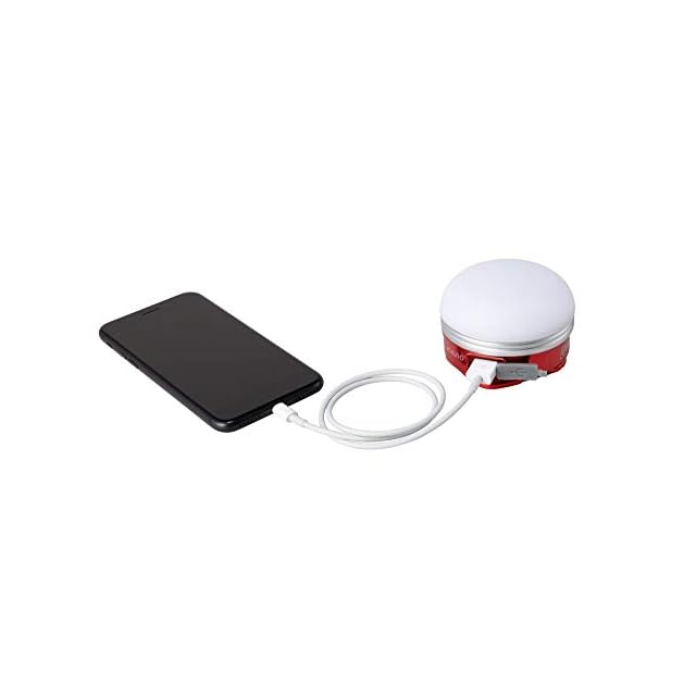 【明るさ】3つの明るさモード(High250/Middle100/Low30lm)が選択可能。球面レンズにより広範囲を照射するので、Highモードではテント上部に吊るしても全体を明るく照らすことができます。
