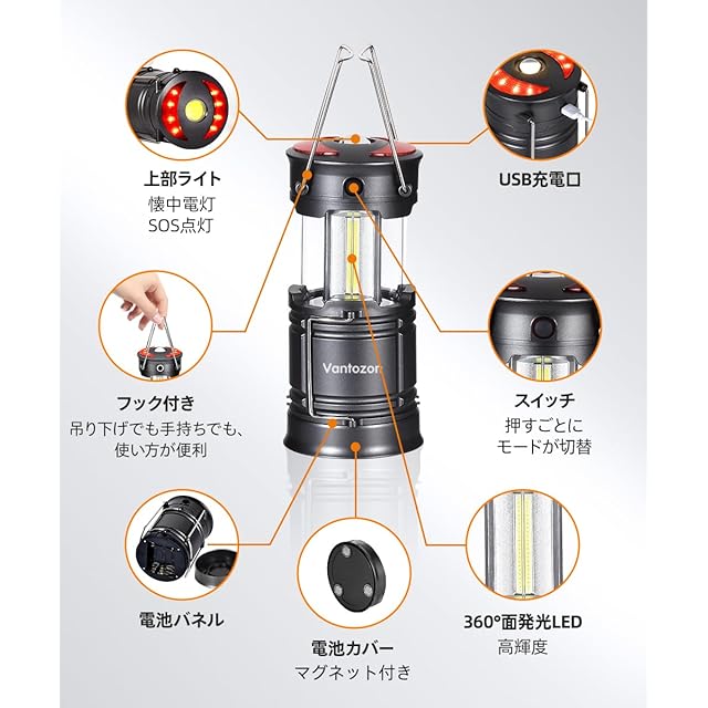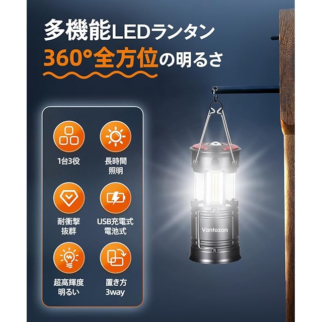 【1台3役・多機能LEDランタン】キャンプ、登山、夜釣り、災害時の非常用照明として活躍する LEDランタン 。本製品は 1台3役 の 多機能 設計で、 ランタン モード、 懐中電灯 モード、緊急SOSモード を搭載。360°全方位の明るさ を提供し、暗闇でもしっかりと周囲を照らします。 軽量 コンパクト な 小型LEDランタン で、キャンプランタン としても最適。手持ち、吊り下げ、マグネット固定の 3WAY設置 に対応し、 人気のランタン LED 充電式ランキング でも上位の実力です。