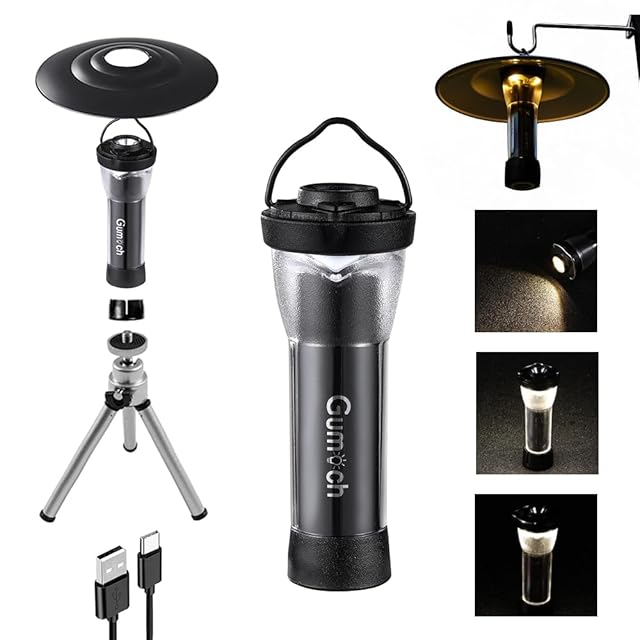 【ポータブル、併用、多機能】:①:本体上部に懐中電灯として使用できるLEDライトが付いているので、緊急時にいつでも使用できます。 ②:マグネットベースは、マグネットが吸着する材質の物に柔軟に取り付けられ、さまざまな角度で固定できます。③:ランタンはフックや紐で吊るしたり、小型照明として使用できます。キャリングラックやリュックに吊るしたりすることも可能です。 ④三脚とランプシェードを装備し、屋外のキャンプや釣りのシーンに使用できます。
