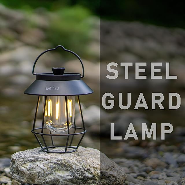 【WoodTruss LEDランタン】 キャンプをはじめアウトドアでの使用はもちろん、お部屋の中でテーブルランプやベッドサイドの灯りとしてインテリアにもご活用いただけます。 ・本体上部のハンドルに引っ掛けて、吊るしてご使用いただけます。本体下部のガード部分が平らになっておりますので、地面やテーブルに置いてご使用いただくことでも可能です。