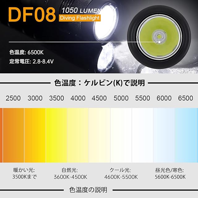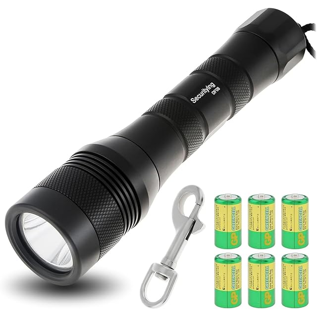 商品名:SecurityIng DF08 ダイビングライト 1050ルーメン 明るい U4 LED 水中ライト IPX-8防水 水中150M 6500K 1つ点灯モード ダイビング・ナイトダイビング・スキューバダイビングライト 単二型電池・18650・26650バッテリーに対応(6本の単二型電池付き)