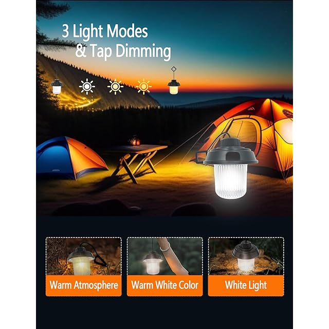 三つ調光モード: 3つの便利な照明モードを備えたこのキャンプランタンは、さまざまな環境で異なる照明ニーズに対応し、夜間に理想的な光源を提供します。